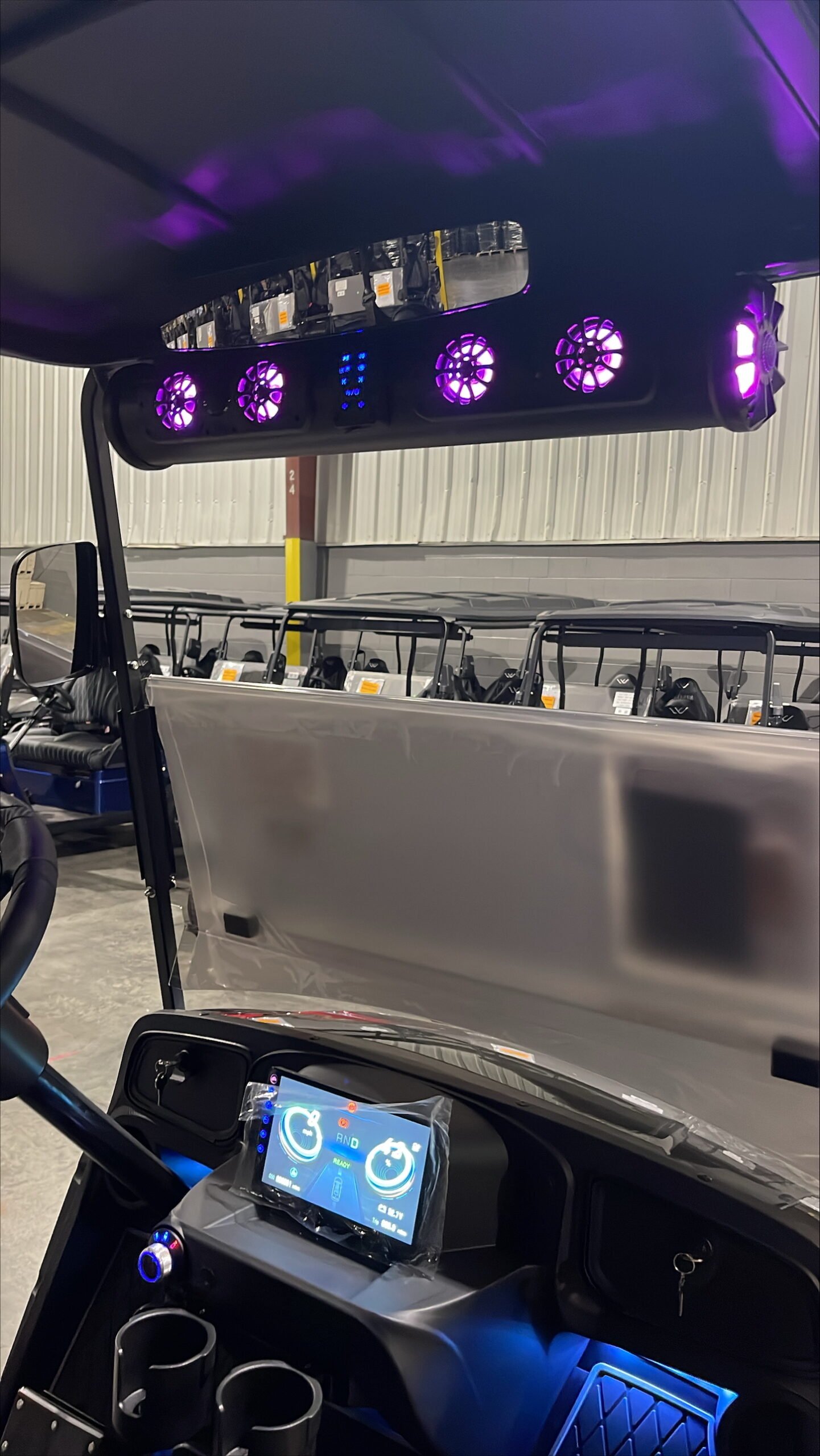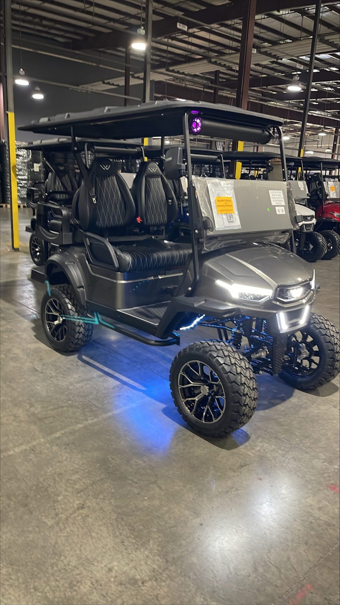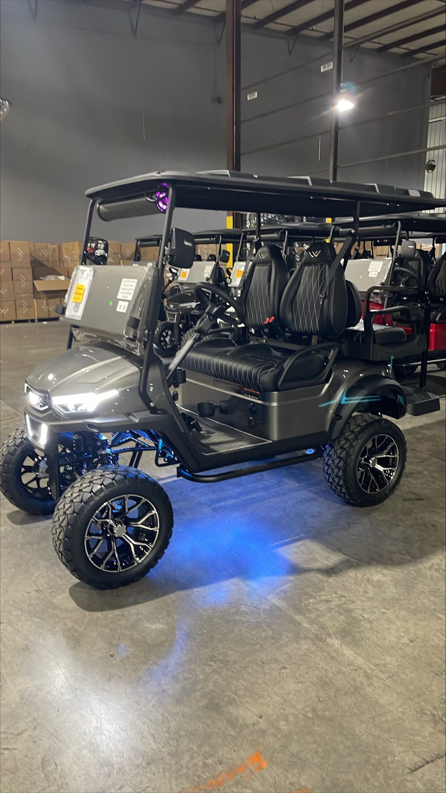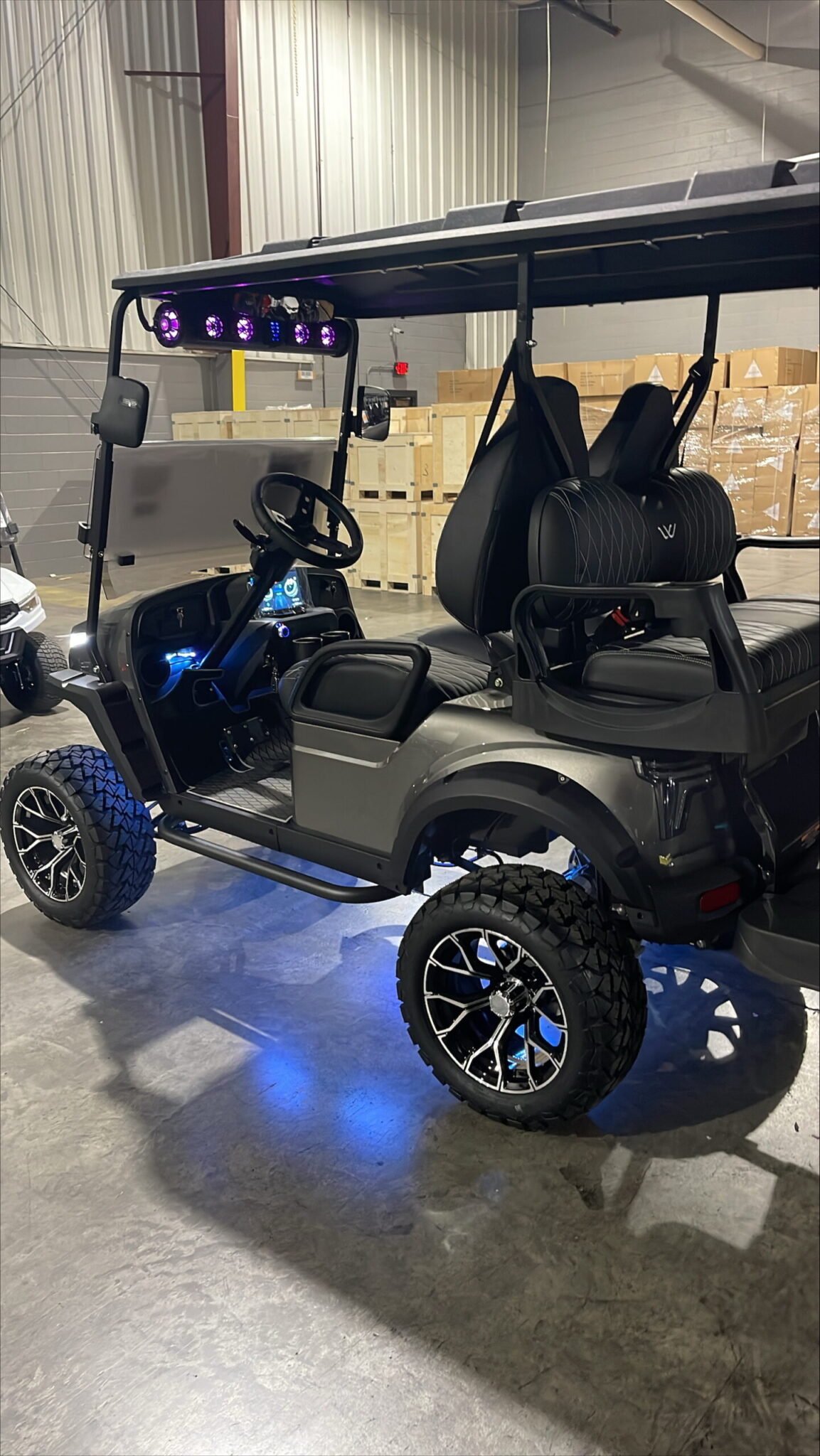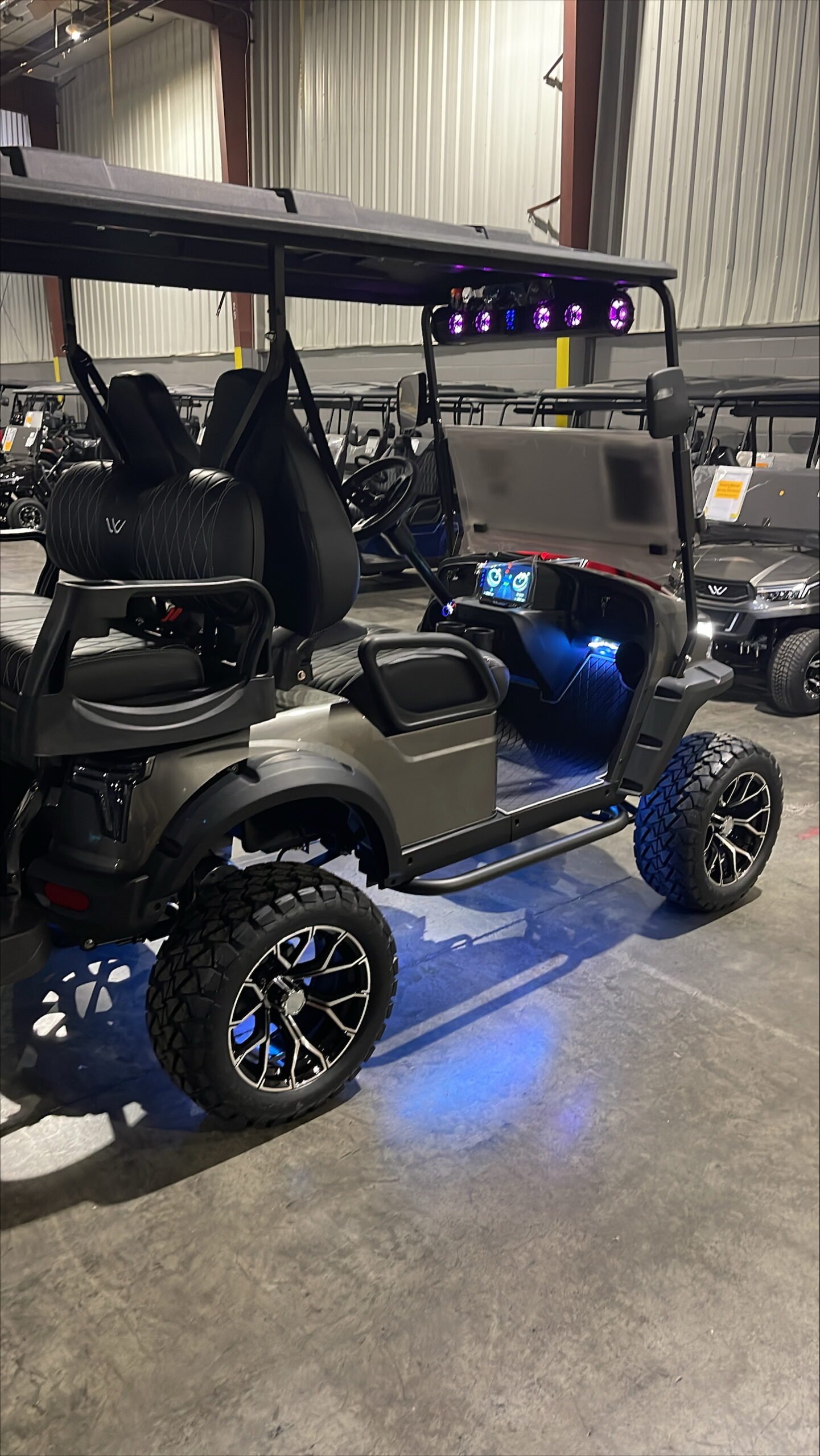 Comments: Factory 4 passenger, Soundbar, Digital touchscreen display, undercarriage led lights, shoulder seatbelts, 5kw High performance AC Motor and Controller, 14 in alloy wheel