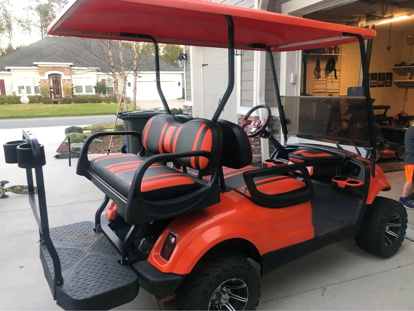 The Club Car Precedent i2, as depicted in the image, comes in both gasoline and electric versions with varying specifications. Here are some general specifications based on available information for recent models: