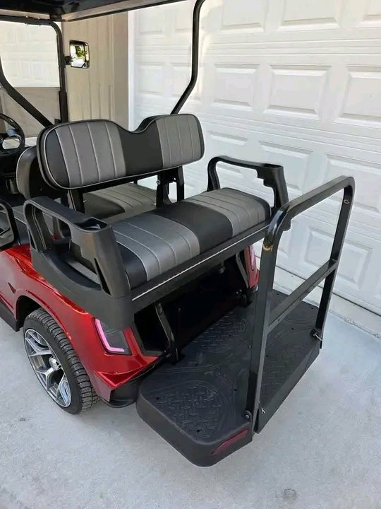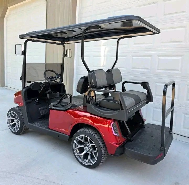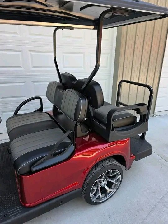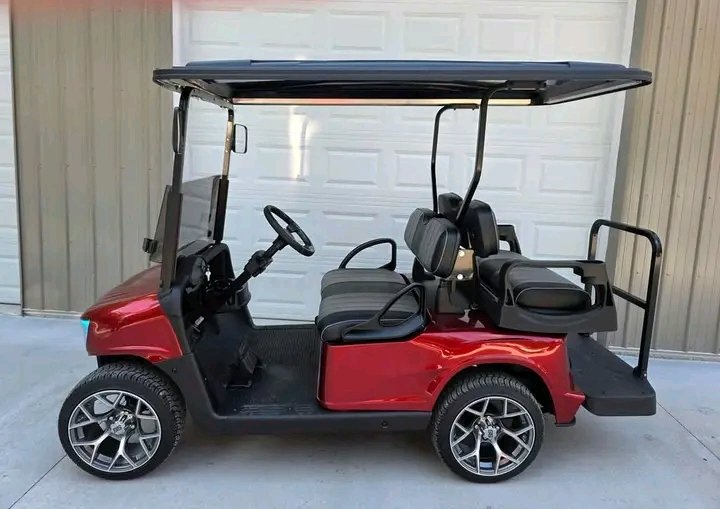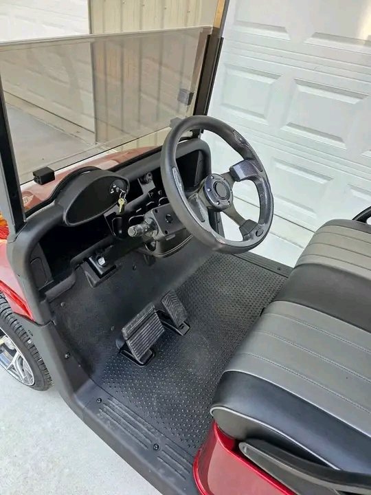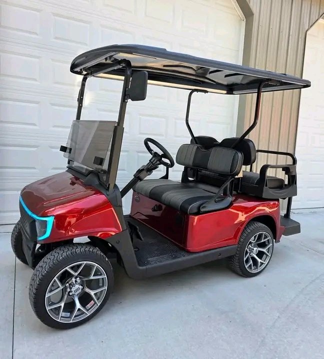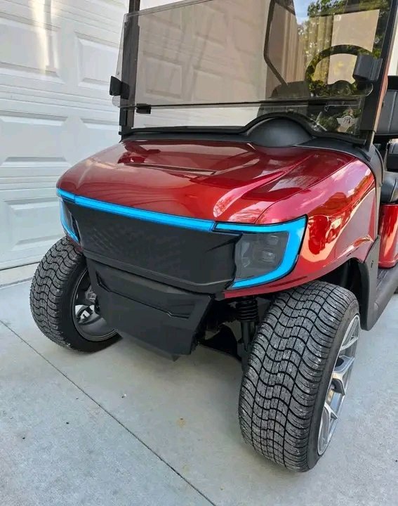 The golf cart in the image appears to be a customized E-Z-GO RXV or potentially a MadJax E-Series golf cart due to the body kit and features. Below are general specifications for the E-Z-GO Freedom RXV, which is a common base model for such customizations: