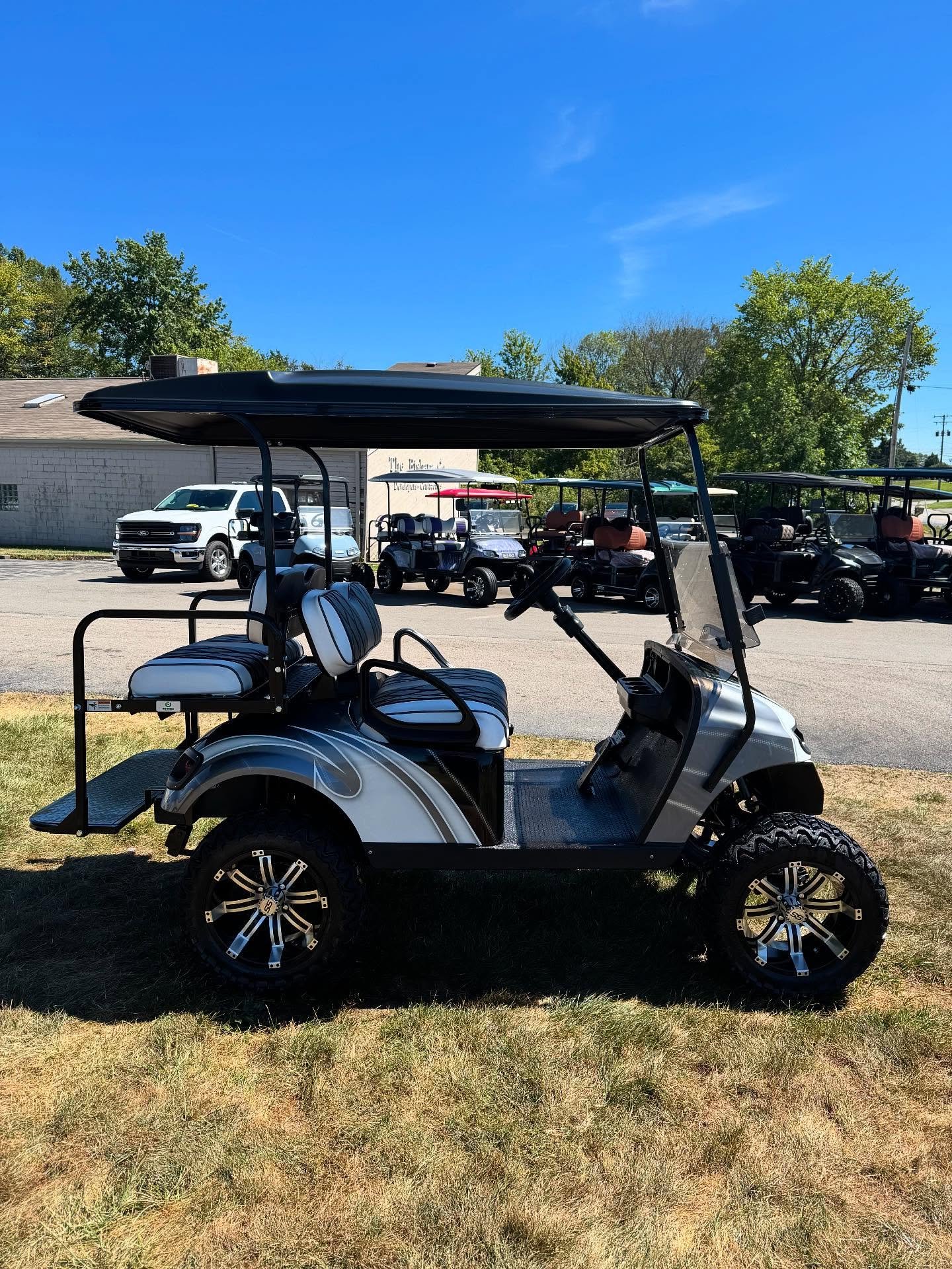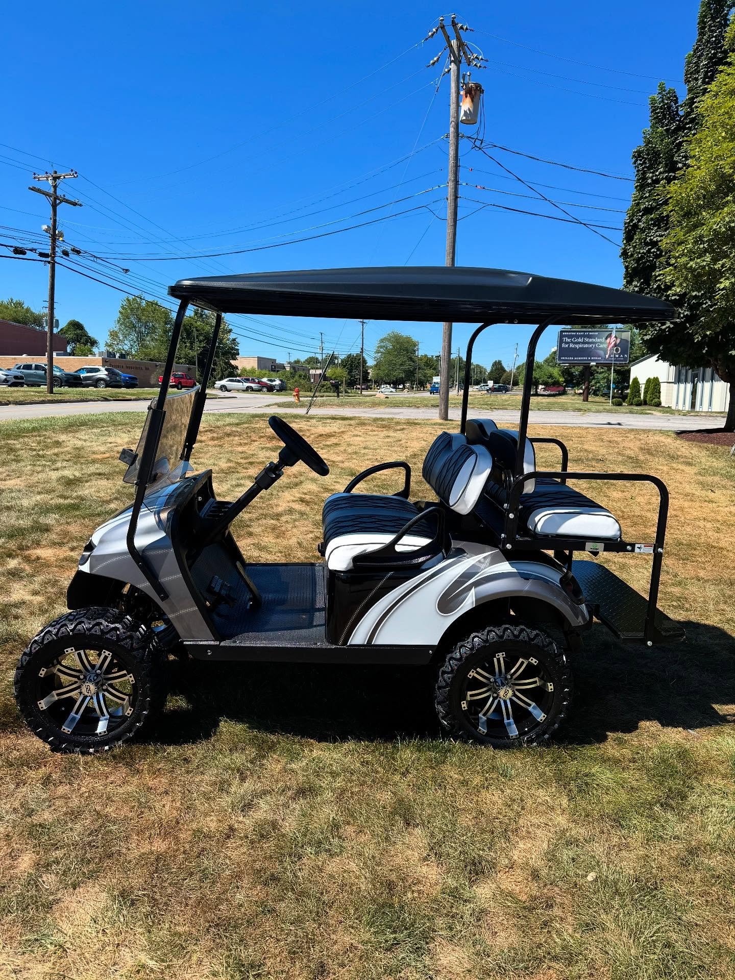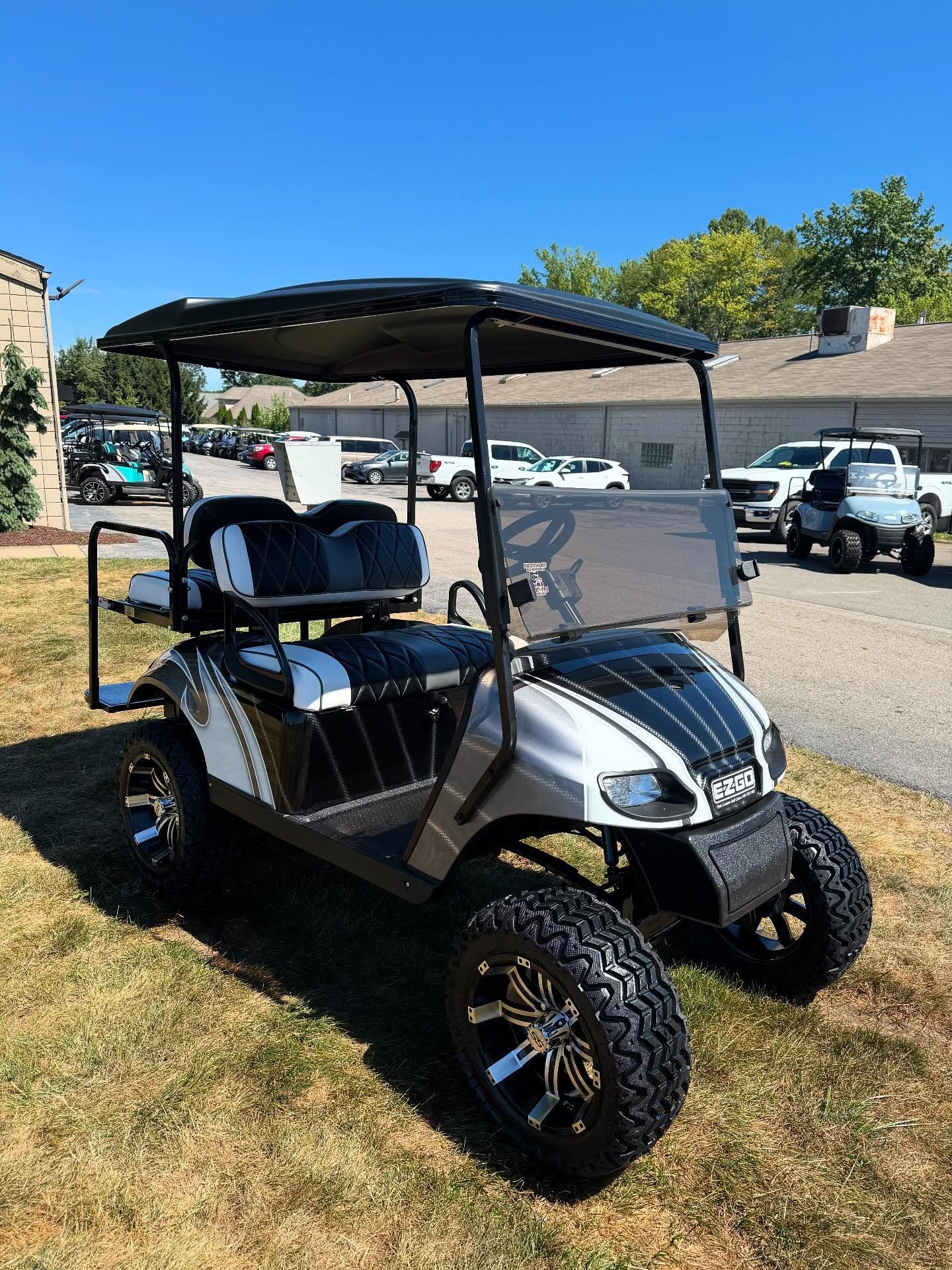 Take a look at this fully redone 2024 Ezgo TXT EFI GAS Golf Cart. Be the talk of the campground with this sweet ride. Very sharp color combo. Body off frame restoration.