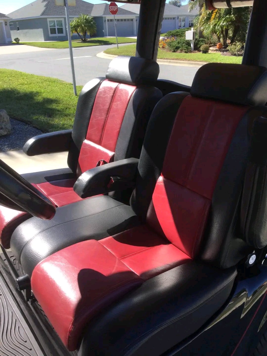 Custom black and red two-tone luxury seats.